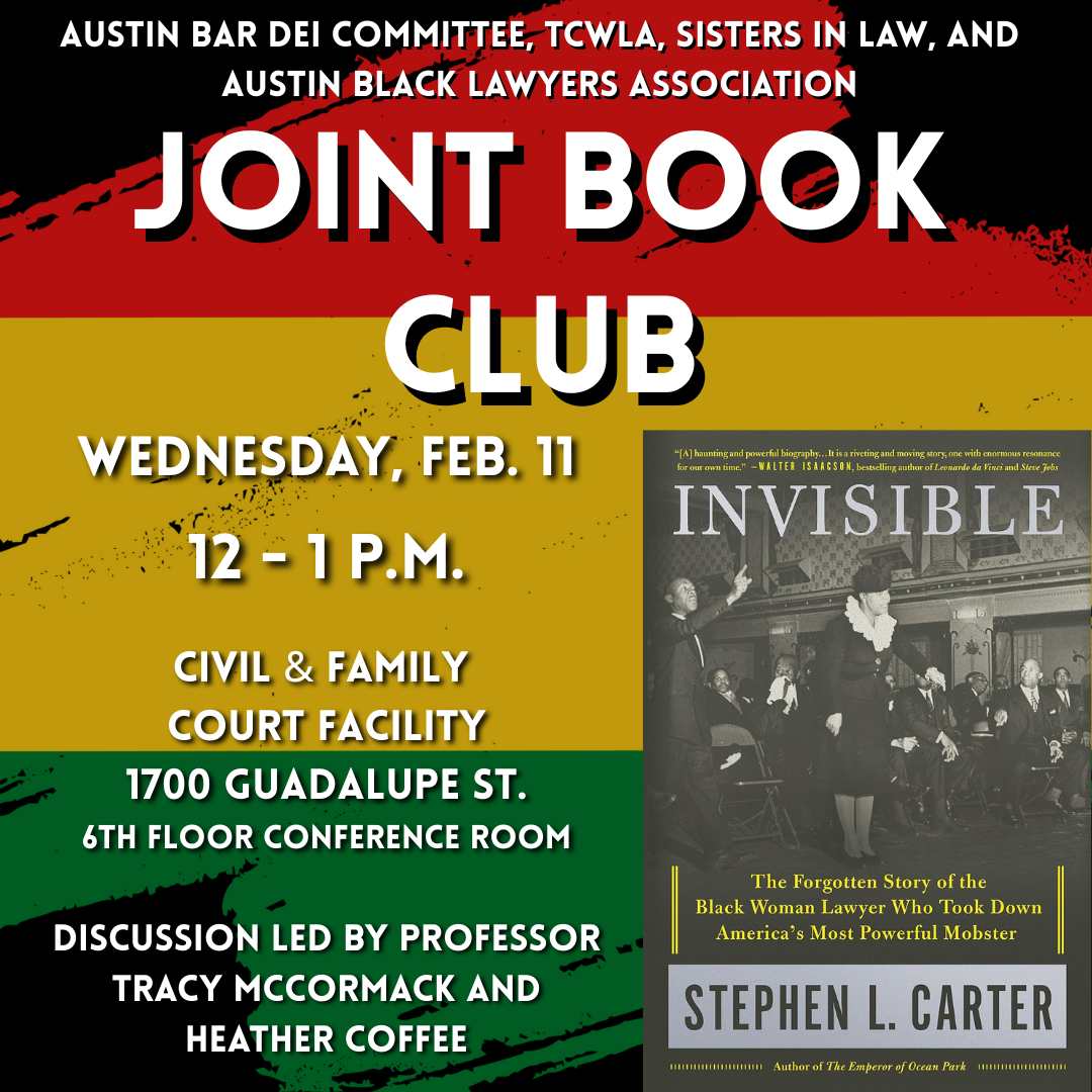 Joint Book Club Meeting with TCWLA, Sisters in Law, Austin Black Lawyers Association, and Austin Bar Association DEI Committee
